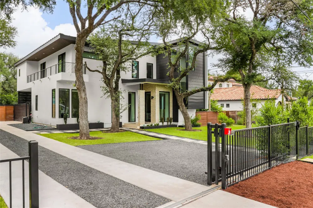 Everybody wants “walkability”, but that’s hard to find in Austin, especially in Westlake. This is one of the rare homes where you get walkability in spades. Here, you enjoy a sidewalk that takes you in just a few steps to Westlake’s coveted Texas Honey Ham and Trianon Coffee shopping center. Just across the street is the prestigious Trinity private school and a five-minute walk or three-minute bike ride will take you to the front door of Texas’ most prestigious public school district: Eanes ISD. This modern family home is truly turn-key ready. Recent reappointments by Wendy Williamson Design, among others, have given this home the perfect updated touch. The floor plan contains a beautifully open and welcoming layout. The kitchen and living room that sprawl across the first floor are seamlessly open to one another. Huge glass in the metal doors and windows floods light in from the front and back of the house. The main floor offers living space as well as kitchen, dining, a beautiful front-facing home office, and guest quarters. Upstairs you will find a huge family/game room, paired with three additional bedrooms and baths, and a private master retreat, further separated from the upstairs living areas through a second home office. Out the back a lush lawn sprawls, with plenty of play space surrounding the large pool. The pool includes a built-in hot tub and shallow splash area perfect for young children, pets, or a sun chair to surround yourself with the water. Steps from the pool you will also find the much coveted, fully detached 1-bedroom, 1-bath guest suite. To top it off, this contemporary home sits behind a fully gated front yard with mature grass and oak trees.